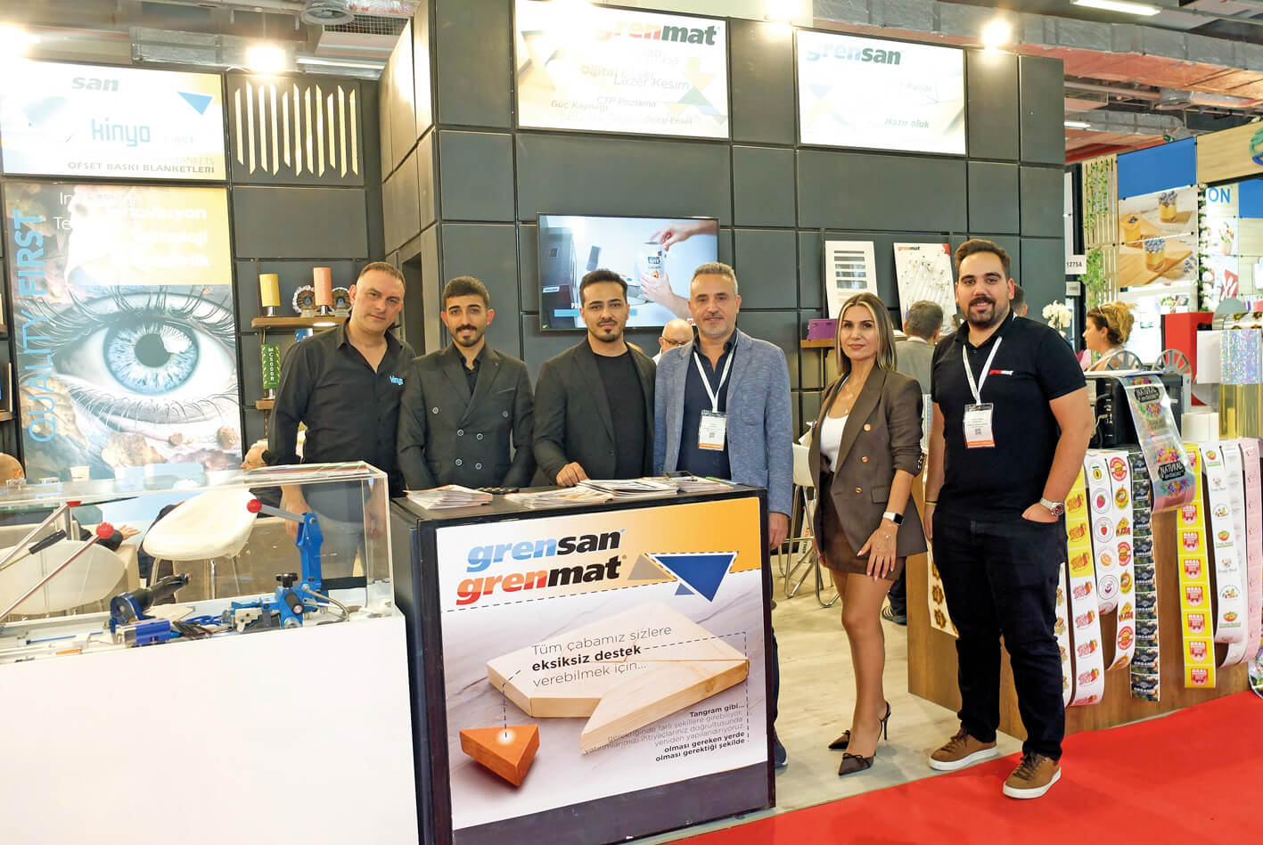 Kardeş şirket Grensan ile aynı standı paylaşan Grenmat’ın diğer temsilcilikleri arasında dijital baskı makineleri Capijet, dijital kesim makineleri Clear Tech, kesim kalıbı üreticileri için çözümler sunan Lasercomb ve ServiForm, ofset ve flekso kalıp hazırlama CtP sistemleri geliştiren Amsky, gibi markalar bulunuyor.