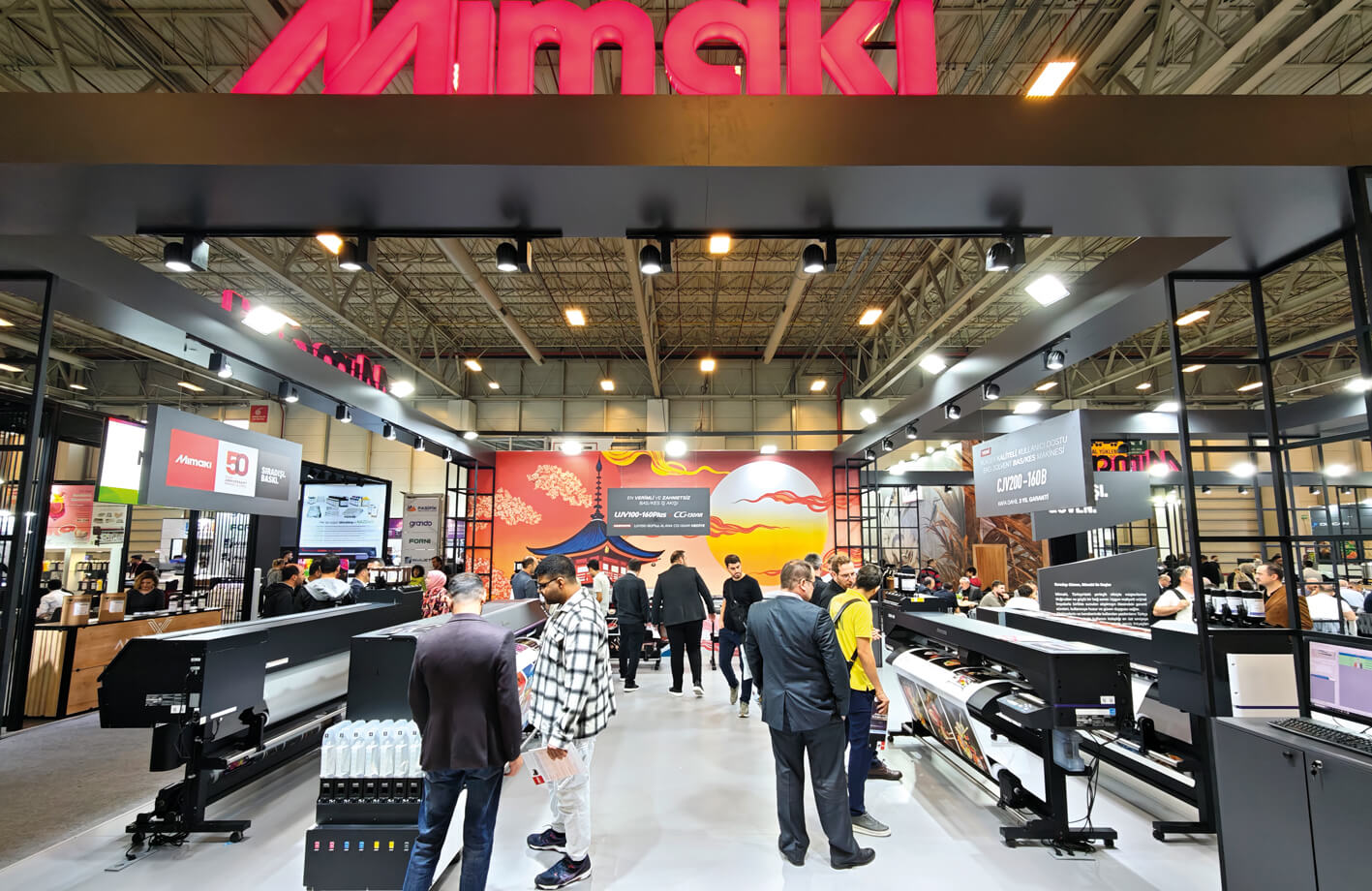 308 m2’lik tek bir adadan oluşan Mimaki Eurasia standı hem Japon esintilerini taşıyan konsepti hem de sunduğu çözümlerle fuarın yenilik ve iş ağı merkezine dönüştü. Stant duvarlarını süsleyen görseller ve fuar boyunca gerçekleştirilen baskılarda Japon kültürüne ait temalar ve Mimaki’nin 50. yıl dönümü öne çıkarıldı. Yeni dönemin yeni sloganı ‘SIRADIŞI BASKI’ ile ‘SIRADIŞI GÜVEN’, ‘SIRADIŞI MİRAS’ ve ‘SIRADIŞI DUYARLILIK’ mottoları da stantta özel sütun yazıları ile ziyaretçilere sunuldu.